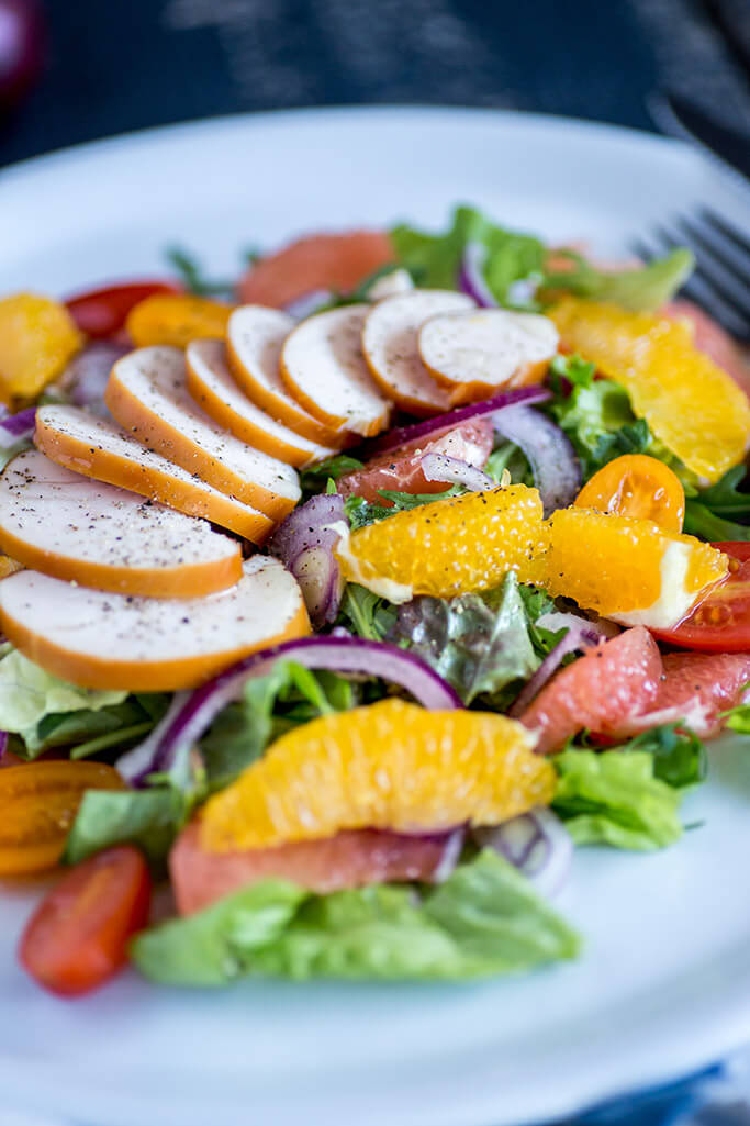 Citrussalade met gerookte kip