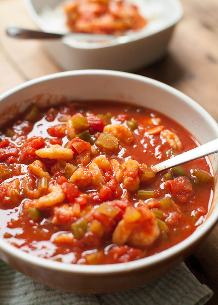 Doe alle ingrediënten, behalve de garnalen in de Crock-Pot.